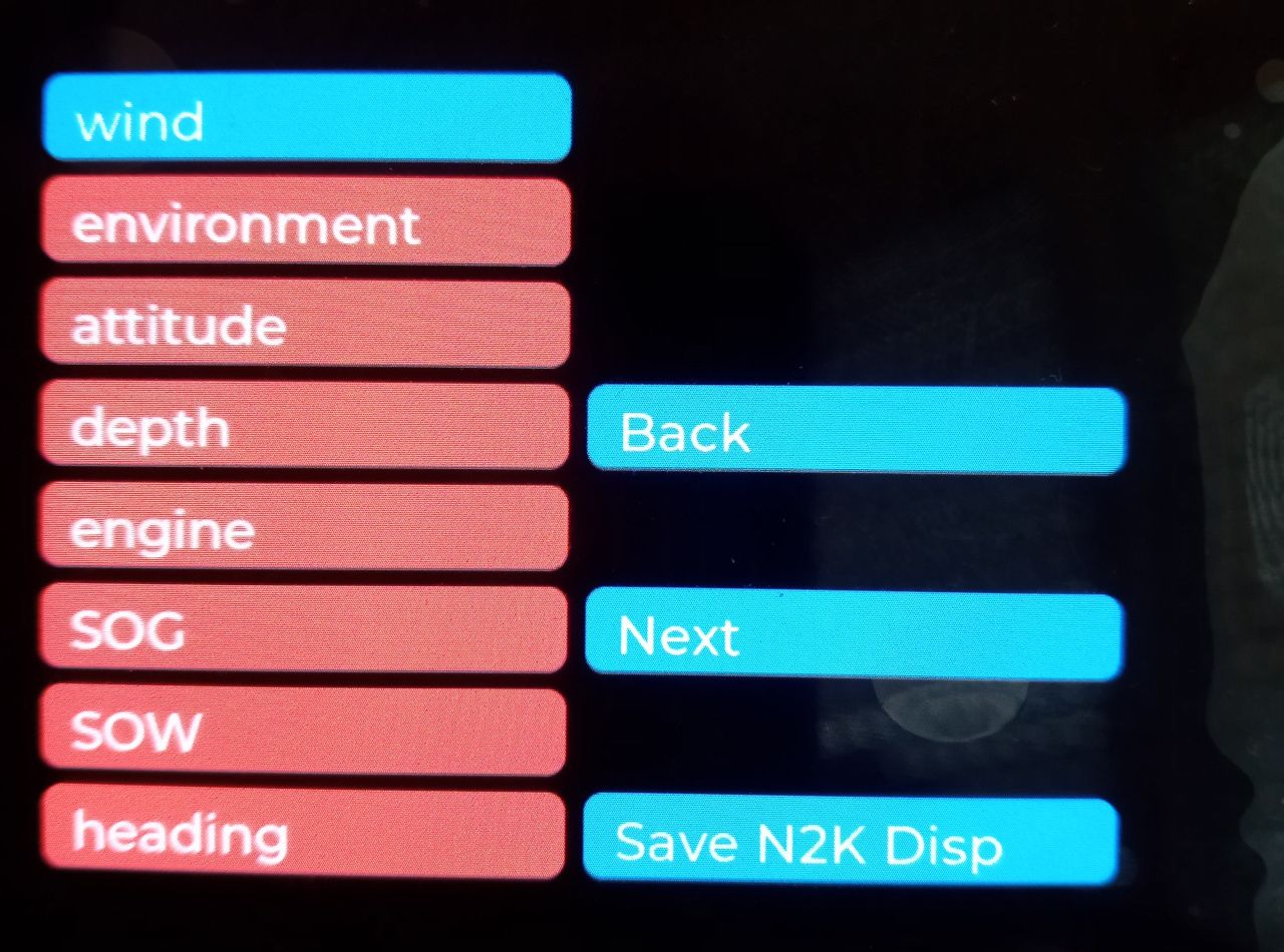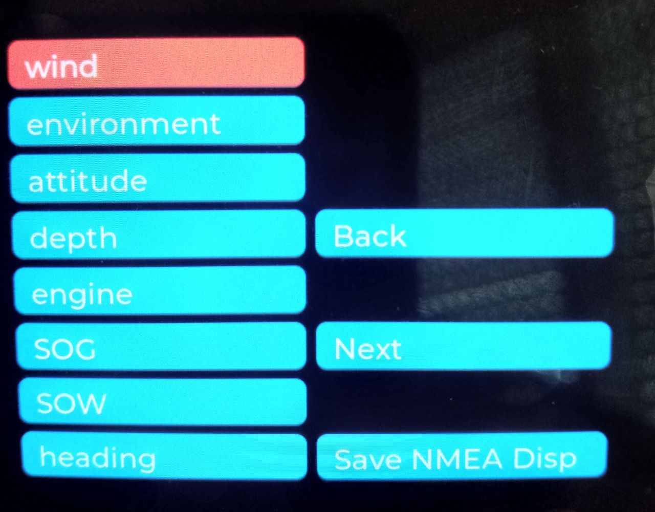 On the mMFD we must configure to display only the NMEA data, so we turn off the N2K wind data, turn on the NMEA wind data and then verify via the status buttons on the the top of the settings page that NMEA data receive is active.